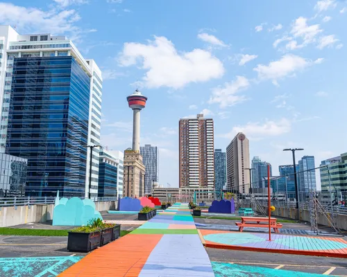 High Park у Калгары — гэта ўнікальная адкрытая прастора, вядомая сваім высокім выглядам на цэнтр горада і раку Бо. Тут можна ўбачыць каляровыя, мастацка аформленыя сталавыя зоны, якія спалучаюць функцыянальнасць і эстэтыку. Парк найбольш наведвальны летам, дзякуючы яркім муралам і інтэрактыўным інсталяцыям, што робіць яго асабліва фатаграфаваным. Вышыня парку прапануе выдатныя магчымасці для здымкаў на світанку і заходзе. Фатографы ацэняць спалучэнне прыроднага краявіду з гарадскімі аб'ектамі. Аднак даступ да самых высокіх пунктаў патрабуе крыху прагулкі, таму рэкамендуецца надзяваць зручнае абутак. Парк адносна менш запоўнены, што дазваляе праводзіць фота-сесіі ў спакоі.