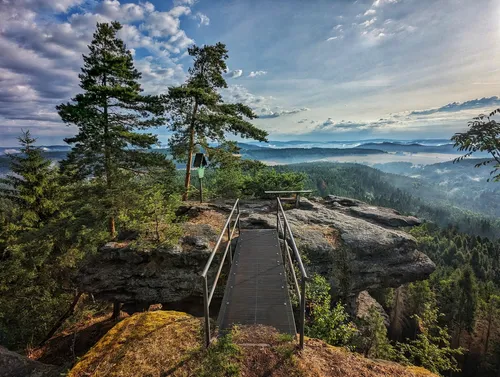 Сігналштайн у Гіррышы, Германія, прапануе панарамны выгляд, ідэальны для фатаграфавання пейзажу Нацыянальнага парку Саксонская Швейцарыя. Скальная фармацыя рэзка ўзносіцца, адкрываючы ўнікальны погляд на навакольныя пясчаніковыя скалы і пышныя лясы. Найлепшы час для здымкаў — раніца або позні дзень, калі святло стварае драматычныя цені. Дарогі могуць быць слізкімі пасля дажджу, таму рэкамендуецца трывалае абутак. Блізкая вёска Гіррыш дадае вясковы шарм з традыцыйнай нямецкай архітэктурай. Сігналштайн не занадта перапоўнены, што дазваляе праводзіць фотасесіі без перапынкаў, асабліва па-за пікавымі турыстычнымі сезонамі.