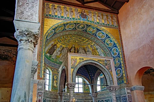 La Basílica Eufrasiana, situada al cor de Poreč, Croàcia, data del segle VI i és un lloc Patrimoni Mundial de la UNESCO. Aquest impressionant exemple d'arquitectura bizantina primerenca ofereix intricats mosaics amb rajoles de vivid or i blau, especialment a l’absis, representant Crist i els sants circumdants. El millor moment per capturar-les és al matí, quan la llum natural millora els seus colors. No et perdis el palau episcopal i el campanar per a vistes panoràmiques de Poreč, especialment durant la posta de sol, que ofereix una oportunitat fotogràfica ideal. L'atri, amb les seves antigues columnes i atmosfera serena, proporciona un escenari meravellós per a preses de detall i composicions. Tingues en compte l'horari de visita, ja que pot variar segons la temporada.