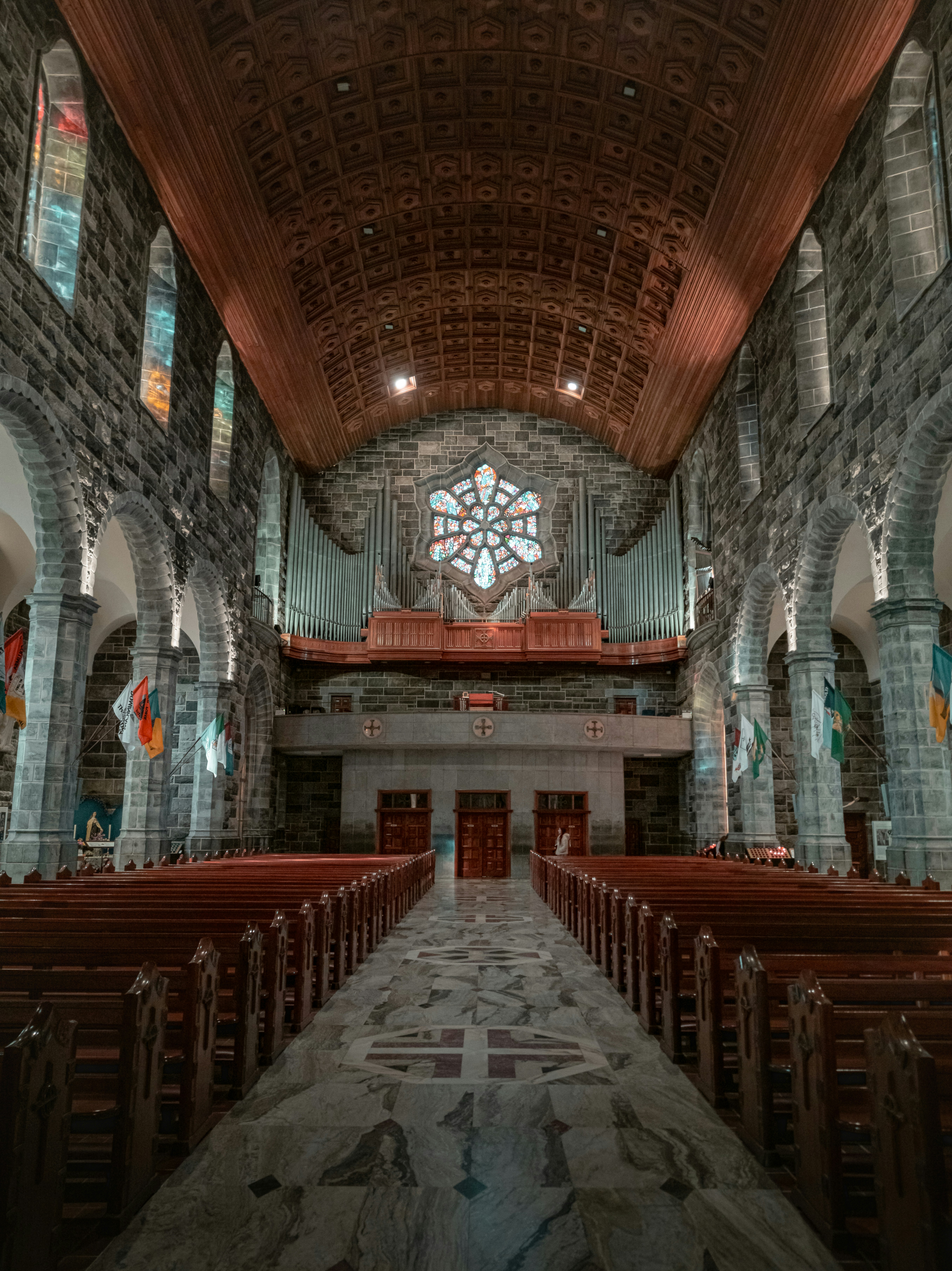 Una de les catedrals de pedra més recents d’Europa, la Catedral de Galway va ser dedicada el 1965 i es troba majestuosa a les ribes del riu Corrib. Famosa per la seva impressionant cúpula, mosaics intricats i vitralls, combina elements renaixentistes, romànics i gòtics en una joia arquitectònica única. A l’interior trobaràs un espai tranquil amb obres d’art detallades, un òrgan imponent i sostres de marbre distintius. Situada a prop del pont Salmon Weir, és fàcil arribar-hi a peu des del centre de la ciutat i ofereix vistes panoràmiques del riu. Els moments de pregària serens alternen amb serveis regulars de missa, així que planifica la visita per gaudir-ne sense interrompre el culte local.