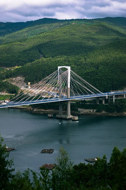 El Pont de Rande, un sorprenent pont atirantat, connecta les ribes nord i sud de la Ria de Vigo. El pont en si mateix, especialment al capvespre, ofereix oportunitats fotogràfiques espectaculars amb el seu disseny elegant sobre el fons de l'estuari. Per a una vista panoràmica excepcional, dirigiu-vos al Miradoiro do Campo da Rata, un mirador escènic situat sobre el Pont de Rande. Aquí, podeu capturar vistes impressionants de la Ria de Vigo, amb el pont afegint un punt focal dramàtic. Visiteu-lo a l'alba o al capvespre per obtenir les millors condicions de llum, i no us perdeu les ruïnes històriques i el paisatge verd gallec que emmarquen perfectament l'escena.