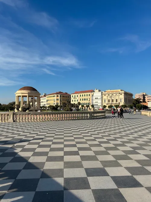 Umístěný na malebném nábřeží Livorna nabízí altán na Terrazza Mascagni panoramatický výhled na Tyrhonské moře. Pojmenovaný po skladateli Piestru Mascagnim a se slavnou černobílou kostkovanou dlažbou je promenáda oblíbená pro večerní procházky a západy slunce. Neoklasicistní altán je centrem venkovních koncertů a romantickým místem pro focení. V blízkosti si můžete vychutnat místní mořské plody nebo navštívit Fortezza Vecchia a objevit historii Livorna. Terrazza Mascagni, snadno dostupná veřejnou dopravou, zve k obdivování dechberoucích výhledů při procházkách podél pobřeží.