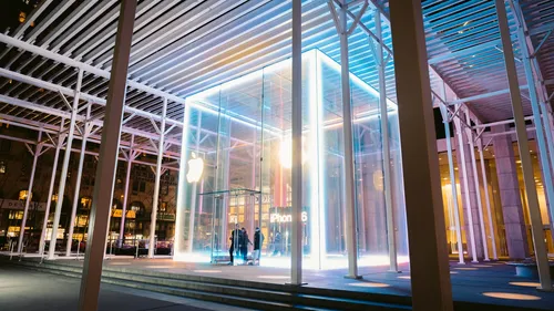 Direkt gegenüber dem Plaza Hotel lädt Apple Fifth Avenue Besucher ein, einen innovativen Einzelhandelsbereich unter seinem ikonischen Glaswürfel zu entdecken. Dieser 24-Stunden-Standort bietet jederzeit Bequemlichkeit mit modernen Designelementen, interaktiven Produktstationen und fachkundigem Personal für technische Anliegen. Die unterirdische Anordnung ermöglicht einen einzigartigen Effekt, da natürliches Licht durch das transparente Pavillon oben einfällt. Besucher profitieren von praxisorientierten Workshops, kreativen Sessions und kostenlosem WLAN – ein praktischer Stopp während eines Midtown-Besuchs. In der Nähe befinden sich Attraktionen wie der Central Park, das Rockefeller Center und erstklassige Einkaufsmöglichkeiten entlang der Fifth Avenue, sodass Sie die Umgebung vor oder nach Ihrem Besuch erkunden können.