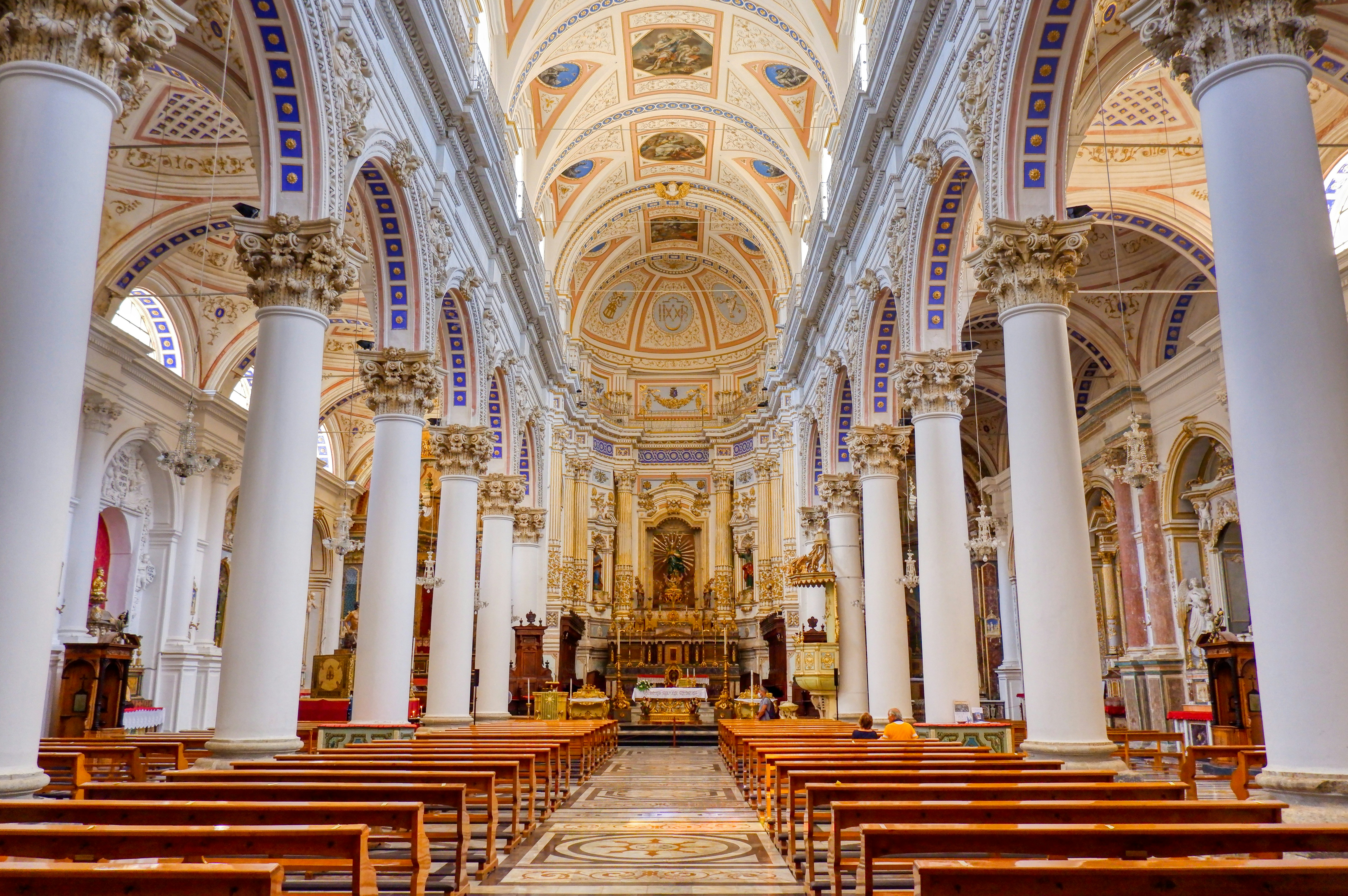Chiesa di San Pietro ist eine wunderschöne Kirche in Modica, Italien. Es ist eines der wichtigsten Wahrzeichen von Modica und ein großartiger Ort für Touristen. Die Kirche wurde im 13. Jahrhundert erbaut und ihre wunderschöne neoklassizistische Fassade ist ein unvergesslicher Anblick. Im Inneren hat die Kirche einen imposanten Saal, der allen Besuchern eine feierliche Atmosphäre bietet. Die Kirche enthält auch bemalte Holzgewölbe und wird oft als Juwel der Barockarchitektur beschrieben, die mit den normannischen Traditionen der Region verschmilzt. Die Kirche ist das ganze Jahr über geöffnet und ihre Pracht kann von allen bewundert werden.