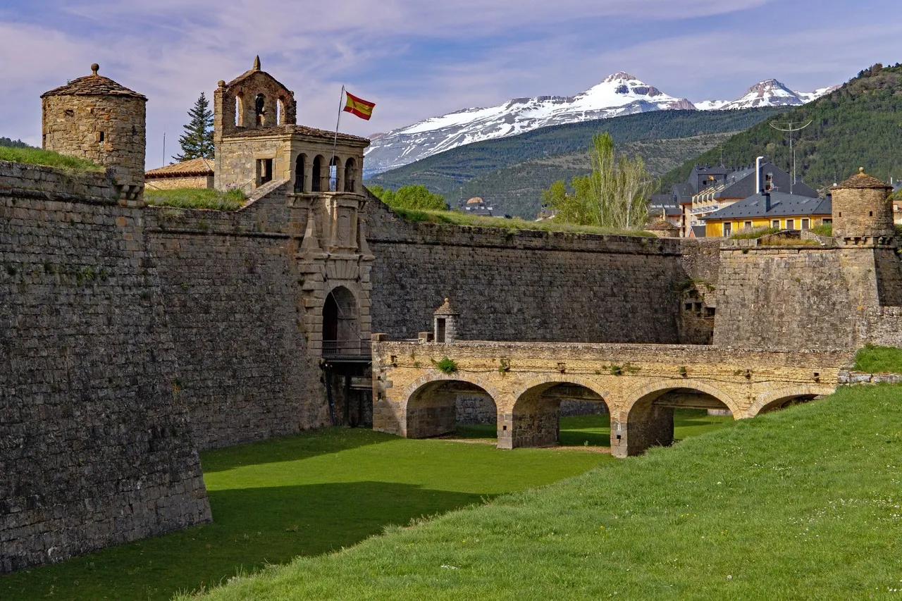 Die Ciudadela de Jaca, auch bekannt als Castillo de San Pedro, ist eine gut erhaltene, pentagonale Festung aus dem 16. Jahrhundert in Jaca, Spanien. Der Ort bietet nicht nur hervorragende Beispiele der damaligen Militärarchitektur, sondern auch großartige Gelegenheiten für Fotografen, seine imposanten Bastionen und den Hintergrund der Pyrenäen festzuhalten. Wichtige Orte sind der Graben (oft von Hirschen frequentiert), die elegante Zugbrücke und die harmonischen Innenhöfe. Beleuchtung kann die Stimmung Ihrer Fotos dramatisch verbessern, besonders bei Sonnenaufgang und Sonnenuntergang. Achten Sie auf filigrane Steinschnitzereien und das Zusammenspiel von Schatten für einzigartige Perspektiven. Erwägen Sie die Verwendung eines Weitwinkelobjektivs, um das massive Ausmaß der Festung und die umliegende Landschaft einzufangen.