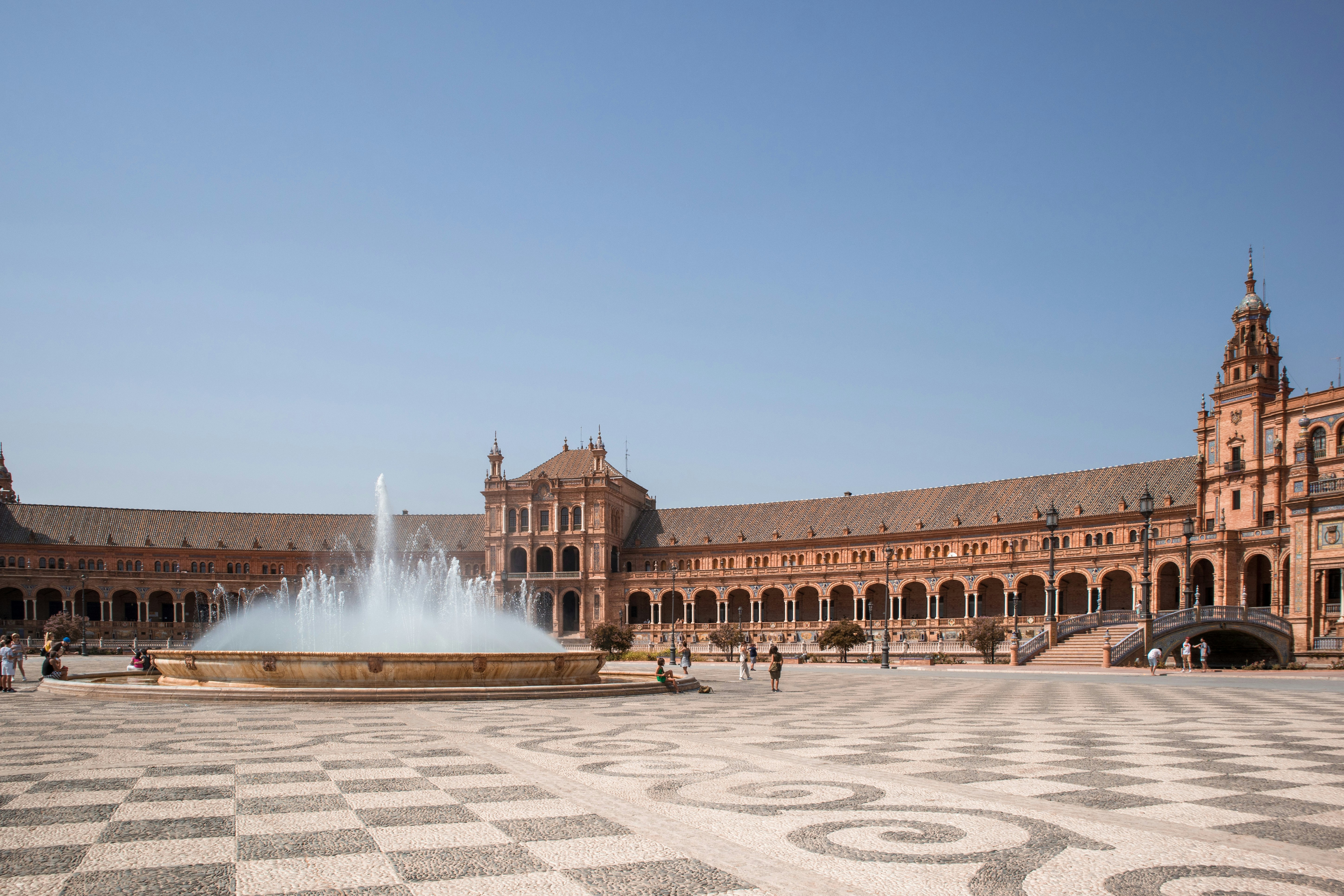 Fuente Plaza de España ist ein prächtiger spanischer Brunnen in Sevilla in Spanien. Der Brunnen, einer der größten der Welt, wurde zum Gedenken an die Iberoamerikanische Ausstellung von 1929 gebaut. Der Brunnen befindet sich auf der Plaza de España, die das Herzstück der Ausstellung von 1929 war. Der Brunnen ist eine beeindruckende Bronzeskulptur eines Löwen, der auf einem großen Sockel montiert ist, mit einer Statue einer Frau, die sich vor ihm verbeugt. Der Brunnen ist von einem Wasserbecken umgeben und wird von einer Reihe niedriger weißer Wände eingerahmt. Die Wände des Brunnens sind mit den Namen der spanischen Provinzen beschriftet. Die Plaza de España ist ein beliebter Ort für Touristen und bietet eine großartige Gelegenheit, die Schönheit und Erhabenheit dieses imposanten Brunnens zu genießen.