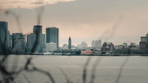 Ein großer New Jersey Transit-Knotenpunkt jenseits des Hudson River von Manhattan, das Hoboken Terminal, eröffnete 1907 mit beeindruckender Beaux-Arts-Architektur und einem Buntglas-Dachfenster im großen Warteraum. Der ikonische Uhrturm heißt Reisende an einer belebten Station willkommen, die Pendlerverkehr, PATH-Service nach Manhattan und Fährverbindungen bietet. Die umliegenden Straßen bestechen durch eine lebhafte Uferpromenade mit Restaurants, Cafés und Bars sowie atemberaubenden Blick auf die New Yorker Skyline. Baseballfans können die nahegelegenen Elysian Fields besuchen, wo das erste organisierte Spiel stattfand, während zahlreiche Einkaufs- und Kulturangebote in unmittelbarer Nähe des Terminals liegen.