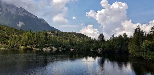 Lago Marcio ist ein wunderschöner Bergsee in der Nähe von Branzi, in der Provinz Bergamo, in der Region Lombardei, Italien. Es ist umgeben von steilen Klippen, üppiger Vegetation und malerischen Wanderwegen. Das klare Wasser des Sees lädt zum Schwimmen, Angeln und Kajakfahren ein. Leicht erreichbar von der nahe gelegenen Stadt Bergamo und dem internationalen Flughafen Orio al Serio, ist es ein großartiger Ort für Outdoor-Aktivitäten und Tagesausflüge. Eine kurze Wanderung vom See entfernt liegt der atemberaubende Marcio-Wasserfall, ein perfekter Ort für ein Picknick und einige atemberaubende Fotos der umliegenden Natur.