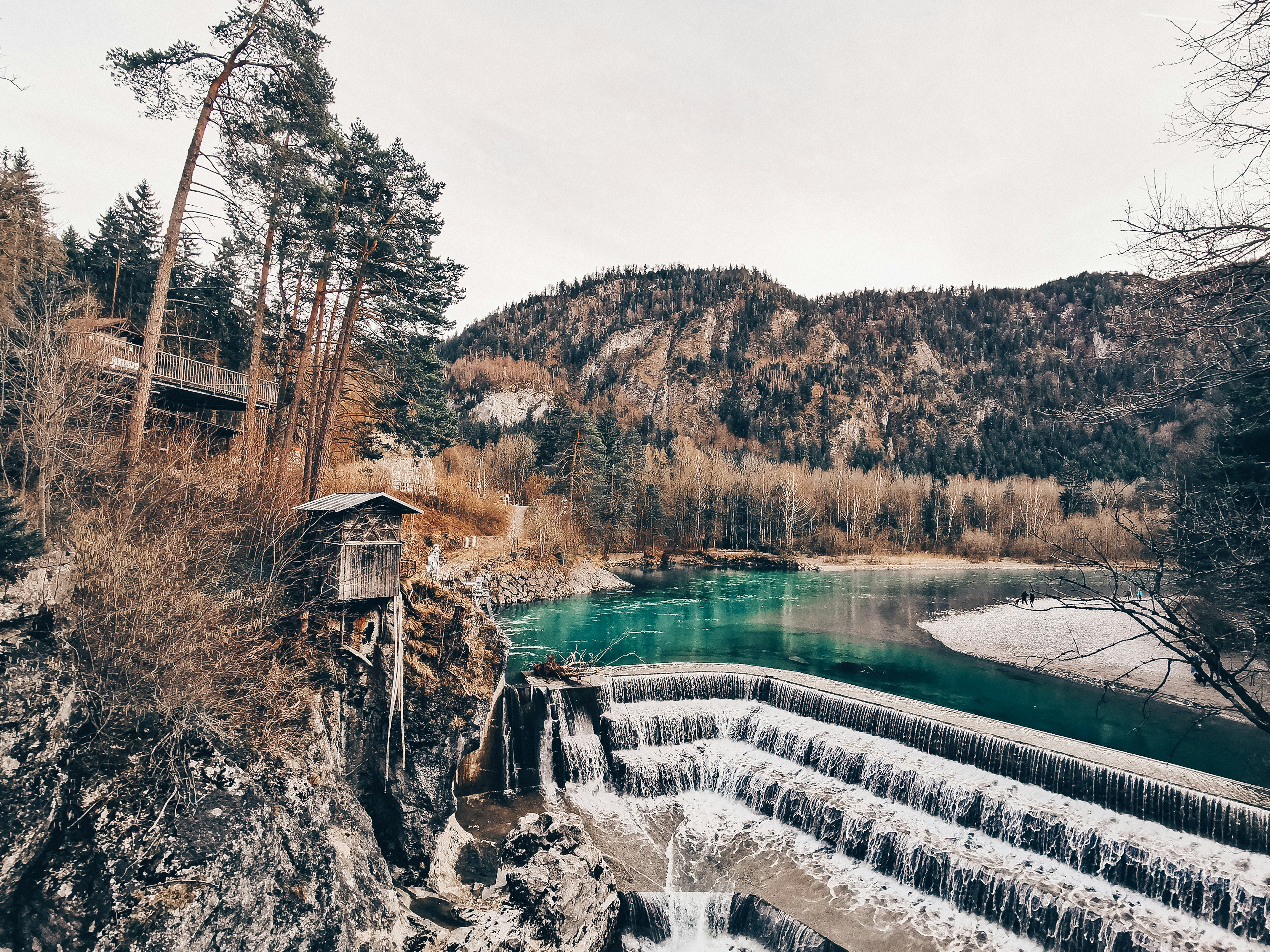 Der Lechwasserfall ist ein beeindruckender Wasserfall in Füssen, Deutschland, in der Nähe von Schloss Neuschwanstein. Dieser Wasserfall bietet fantastische Möglichkeiten für Fotografen, da er im wunderschönen Neuschwansteintal liegt. Hier können Sie atemberaubende Bilder mit der beeindruckenden Bergkulisse im Hintergrund machen. Es ist auch ein beliebter Ort für Wanderer, da in der Nähe viele Wanderwege durch den Wald führen. Die Wasserfälle bieten auch eine ruhige Atmosphäre, da es einen kleinen See und ein paar alte Statuen am Fuße der Wasserfälle gibt. Darüber hinaus gibt es viele Restaurants, Cafés und Souvenirläden in der Nähe. Sie können ganz einfach den Tag damit verbringen, diese einzigartige natürliche Umgebung zu erkunden und fantastische Fotos zu machen!
