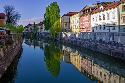 Die Ljubljanica ist ein malerischer Fluss, der durch das Herz von Ljubljana fließt und sich ideal eignet, um die reizvollen und idyllischen Spiegelungen der lebhaften Architektur der Stadt von ihren verschiedenen Brücken aus einzufangen. Die Ribja brv, auch bekannt als die Fisch-Fußgängerbrücke, ist eine zeitgenössische Fußgängerbrücke, die einen einzigartigen Aussichtspunkt bietet, um sowohl den Fluss als auch die dynamischen Ansichten der Altstadt festzuhalten. Entworfen vom Architekten Jurij Kobe, bietet sie einen eleganten modernen Kontrast vor der historischen Kulisse Ljubljanas. In der Nähe bieten die Ufer lebhafte Cafés, Kunstinstallationen und charmante Märkte, die Foto-Reisende einzigartige Möglichkeiten zum Einfangen einer Mischung aus urbanem Leben und ruhigen Wasserszenen bieten. Die Brücke ist besonders fotogen bei Dämmerung, wenn sich die Lichter der Stadt wunderschön im Wasser spiegeln.