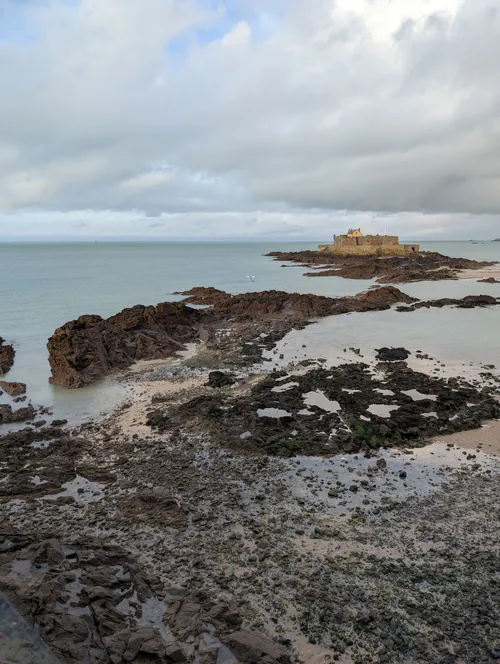 Das National Fort und das Bastion de la Reine sind ikonische historische Wahrzeichen in Saint-Malo, Frankreich. Das National Fort, das im späten 17. Jahrhundert von dem berühmten Militärarchitekten Vauban erbaut wurde, befindet sich auf einer Gezeiteninsel vor der Küste und wurde zum Schutz der Stadt vor Seeangriffen entworfen. Nur bei Ebbe zugänglich, bietet das Fort einen Panoramablick auf Saint-Malo und die umliegende Küste. In der Nähe ist das Bastion de la Reine Teil der beeindruckenden Stadtbefestigungen und gibt Einblick in die Verteidigungsgeschichte der Region. Besucher können die gut erhaltenen Befestigungen erkunden, an geführten Touren teilnehmen und in die reiche maritime Geschichte dieser schönen bretonischen Stadt eintauchen.