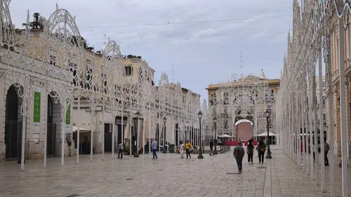 Piazza del Ferrarese liegt im historischen Zentrum von Bari, ist ein lebendiger Treffpunkt in Meeresnähe und mit der Piazza Mercantile verbunden. Ganzjährig beleben Cafés, Restaurants und kulturelle Events den Platz. Hinter Glasscheiben sind Reste der antiken Stadtmauer sichtbar, die Baris vielschichtige Vergangenheit hervorheben. In der Nähe präsentiert Sala Murat zeitgenössische Kunstausstellungen mit modernem Touch. Abends strömen Besucher herbei, um Aperitivi, Focaccia und Panzerotti zu genießen. Straßenkünstler beleben die Atmosphäre und schaffen ein festliches Ambiente. Von hier aus gelangt man leicht zu Fuß nach Bari Vecchia, wo die Basilika San Nicola steht, oder entlang des Lungomare mit malerischen Meerblicken. Dieser Freiluftbereich verbindet Geschichte, Kulinarik und lokalen Charme.