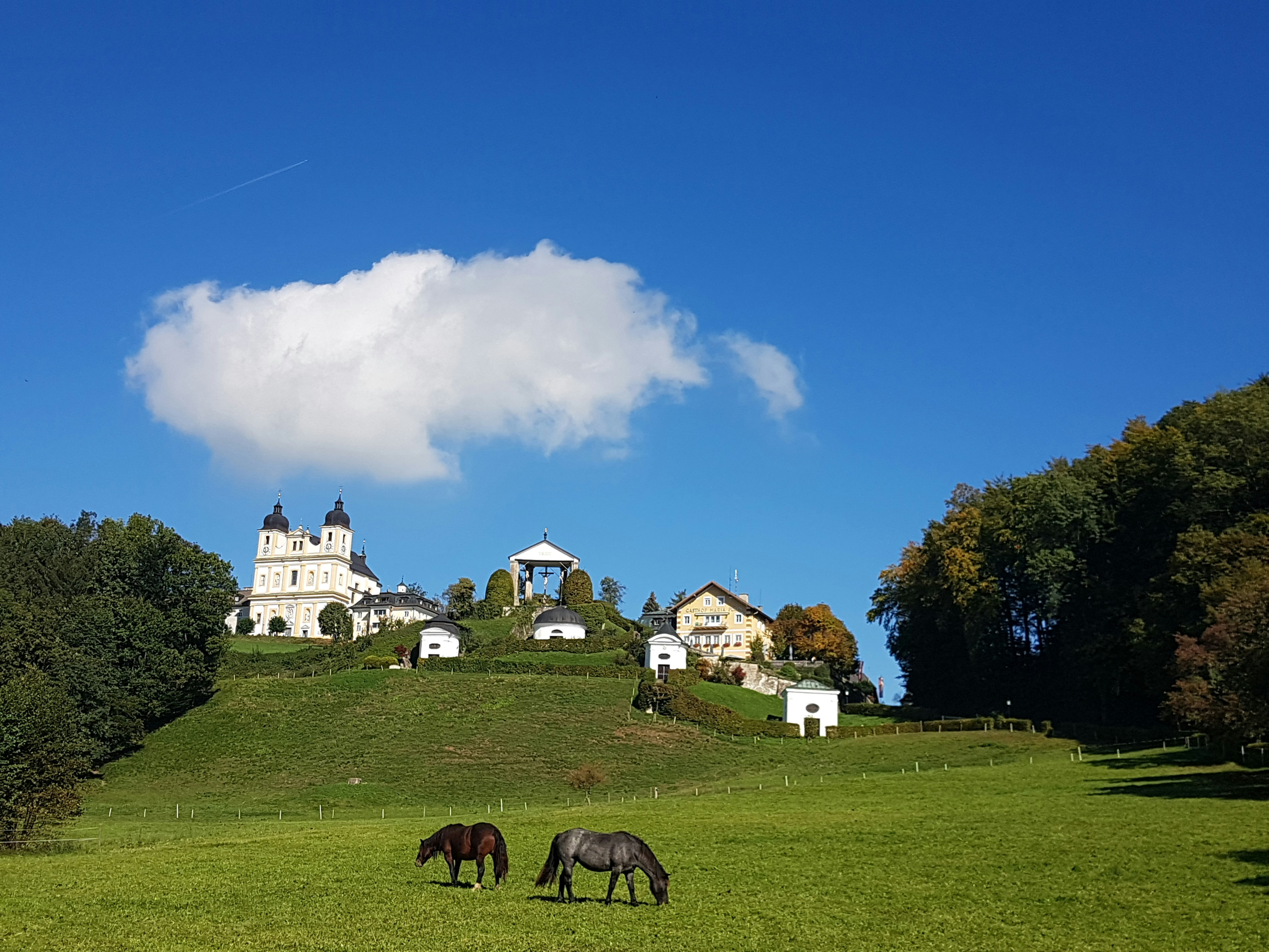 Ein markantes Wahrzeichen über dem friedlichen Dorf Plain in Österreich: Plain Calvary Hill (oft als Kalvarienberg bezeichnet) bietet gewundene Pfade zur kleinen Kapelle und zu den zeitlosen Kreuzwegstationen. Der sanfte Aufstieg belohnt mit weitem Blick auf die umliegende Landschaft – ein Lieblingsort für Fotografen. Obwohl der Weg gut gepflegt ist, werden bei feuchten Bedingungen feste Schuhe empfohlen. Das Gebiet ist leicht mit öffentlichen Verkehrsmitteln oder dem Auto erreichbar, mit Parkplätzen am Fuße des Hügels. Planen Sie etwa eine Stunde für einen entspannten Besuch ein und genießen Sie die ruhige Atmosphäre dieses spirituellen Rückzugsorts – das Licht am frühen Morgen oder späten Nachmittag verstärkt seine friedliche Stimmung.