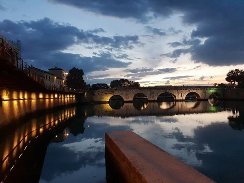 Ponte di Tiberio in Rimini, Italien, ist eine Brücke, die im Jahr 14 n. Chr. vom römischen Kaiser Augustus erbaut wurde. Es ist einer der am meisten fotografierten Orte in der Stadt und in Italien. Die Brücke hat drei Rundbögen und ist 12,5 Meter hoch. Es wurde auf den Überresten einer früheren Holzbrücke errichtet, die von Julius Cäsar gebaut worden war. Heute ist es ein beliebter Ort für Touristen und Einheimische mit Blick auf die Adria. Die Aussicht ist atemberaubend und Besucher können die nahe gelegenen Strände, antiken Ruinen und das alte Stadtzentrum von Rimini sehen. Es ist ein großartiger Ort, um die natürliche Schönheit von Rimini und der Umgebung zu sehen. Die Brücke ist leicht zugänglich und es gibt viele Parkplätze in der Nähe der Brücke für diejenigen, die einige Zeit damit verbringen möchten, die atemberaubende Aussicht auf das Meer zu bewundern.