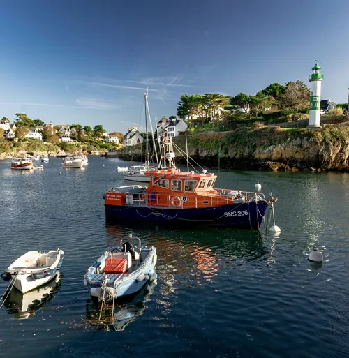 Bunte Fischerboote säumen die Kais dieses ruhigen Hafens, wo malerische Fußwege einen weiten Blick auf den Atlantik bieten. Gemütliche Steinhäuser schmiegen sich ans Wasser, und frische Meeresfrüchte sind in örtlichen Lokalen leicht erhältlich. Ein kurzer Spaziergang führt zu Sandstränden, ideal zum Sonnenbaden oder für Wassersport, während ein nahegelegener Leuchtturm als malerisches Wahrzeichen gilt. Das milde Klima lädt zu entspannten Spaziergängen durch üppige Küstenlandschaften ein, die versteckte Buchten und lebendige Flora enthüllen. Ganzjährig finden Veranstaltungen statt, die maritime Traditionen und bretonische Kultur feiern und sowohl Erstbesucher als auch Stammgäste willkommen heißen.