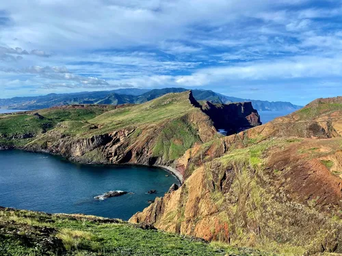PR8 Vereda da Ponta de São Lourenço in Caniçal, Portugal, bietet einen beeindruckenden Wanderweg am östlichsten Punkt Madeiras und bietet einen Panoramablick auf kontrastreiche Landschaften, in denen steile Klippen in den azurblauen Ozean abfallen. Diese 8 km lange Wanderung ist für ihre Artenvielfalt und geologischen Formationen berühmt und bietet eine atemberaubende Kulisse für Fotografen. Einzigartige Flora und die gelegentliche Sichtung von Seevögeln machen sie zu einem lebendigen Motiv. Der Weg kann anspruchsvoll sein und einige steile Abschnitte aufweisen, ist aber dank des milden Klimas Madeiras gut gepflegt und das ganze Jahr über zugänglich. Zu den Highlights zählen das Sardinha-Haus und der Panoramablick vom Punkt São Lourenço. Sonnenaufgang und Sonnenuntergang sind besonders magisch, da sie einen goldenen Farbton über das zerklüftete Gelände werfen und das Meer erleuchten. Bereiten Sie sich immer auf wechselhaftes Wetter vor und nehmen Sie Wasser mit.