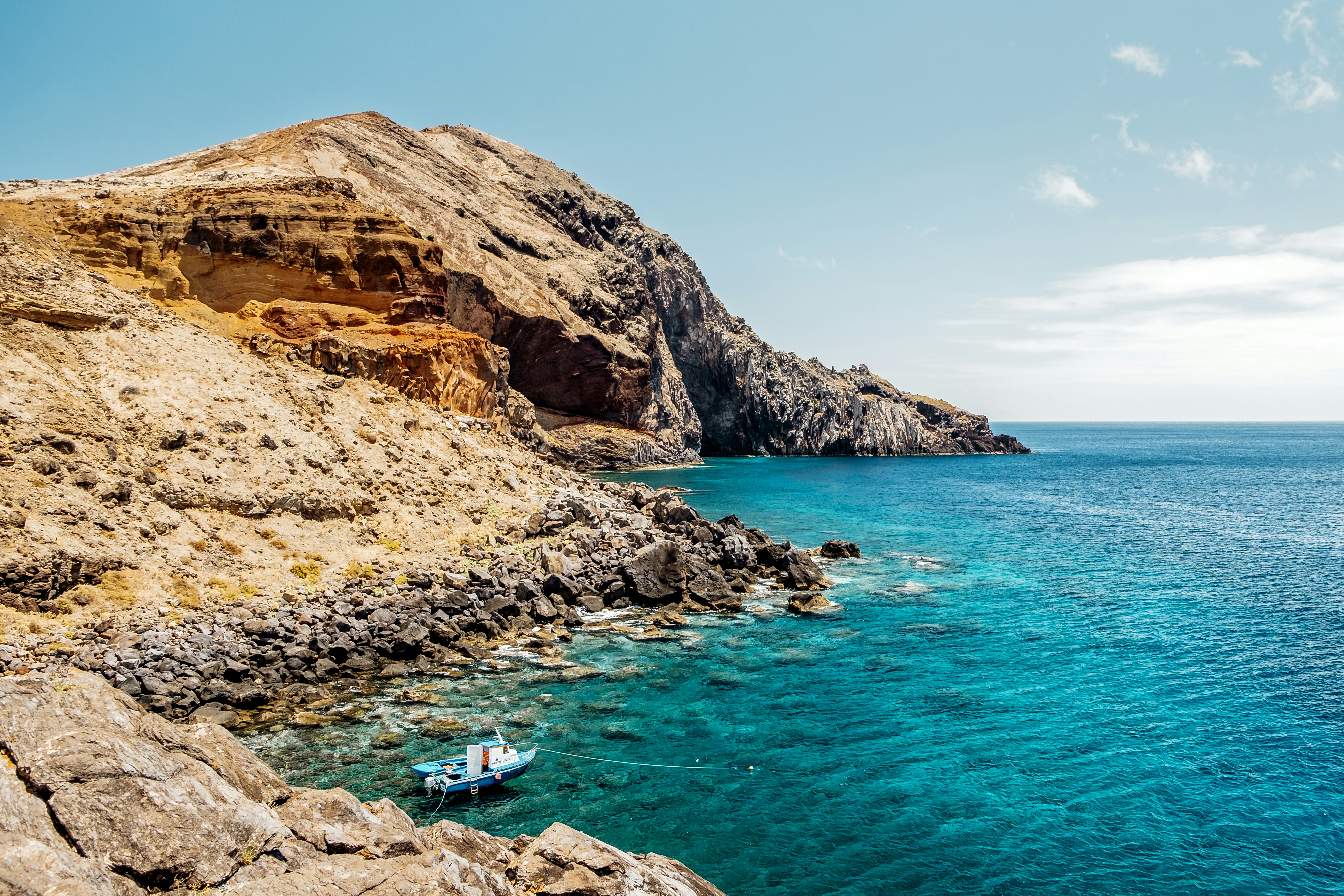 Praia das Sardinhas oder Sardinenstrand ist einer der malerischsten, abgelegensten und abgelegensten Strände in Caniçal, Portugal, direkt an der Atlantikküste. Dieser wirklich besondere Strand bietet Ausblicke auf zerklüftete Klippen, hellen Sand und kristallklares Wasser, was ihn zu einer großartigen Wahl für Naturliebhaber und Fotobegeisterte gleichermaßen macht. Zum Strand zu gehen kann ein Abenteuer für sich sein, wenn man bedenkt, dass man mit einem Boot durch die Fischbecken in der Gegend fahren muss, bevor man den Strand erreicht. Dieser Strand ist in den Sommermonaten ein idealer Ort zum Angeln und Schwimmen, mit einem gewundenen Pfad und Treppen auf den Klippen neben dem Ufer für diejenigen, die etwas weiter erkunden möchten. Obwohl es meist ruhig ist, gibt es in der Nähe auch ein paar kleine Bars und Kioske sowie einige Übernachtungsmöglichkeiten, so dass Sie Ihren Aufenthalt beliebig verlängern können.
