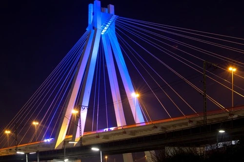 Die Pylonbrücke oder Pylonbrücke ist ein einzigartiges Wahrzeichen in Ludwigshafen am Rhein, Deutschland. Es liegt direkt am Rhein und ist gut sichtbar, wenn Sie sich der Stadt nähern. Die 1972 erbaute Brücke ist aufgrund ihres großen Stahlpylons und ihrer umwerfend schönen Lichter ein beliebtes Ziel für Einheimische und Touristen. Die Brücke ist auch ein großartiger Ort für Landschaftsfotografie und bietet atemberaubende Ausblicke auf den Fluss und die Skyline von Ludwigshafen. Die Brücke ist mit dem Auto oder Fahrrad über die Rheinpromenade erreichbar und kann zur Überquerung des Flusses genutzt werden.