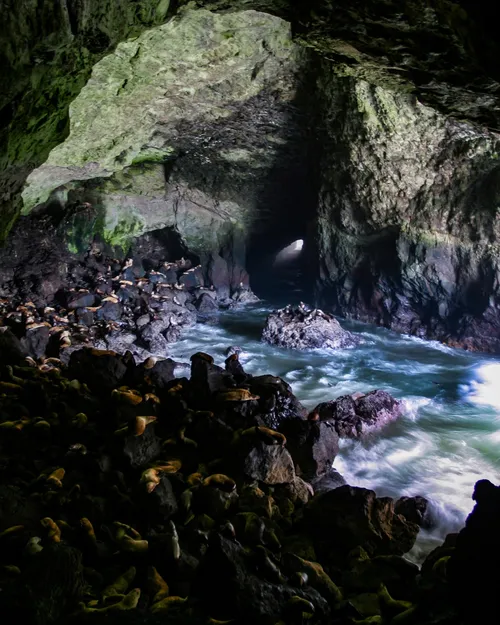 Sea Lion Caves ist die größte Meereshöhle in den Vereinigten Staaten und die einzige, die für die Öffentlichkeit zugänglich ist. Die Höhle liegt drei Meilen nördlich von Florence, Oregon, an der malerischen Küste Oregons und wird von großen Seelöwen bewohnt, von denen einige von der Aussichtsplattform im Freien aus gesehen werden können. Besucher können auch mit dem Aufzug in die Höhle fahren, um einen genaueren Blick darauf zu werfen. Im Inneren der Höhle gibt es eine Vielzahl von Formationen, darunter Stalaktiten und Stalagmiten. Außerdem gibt es in der Höhle eine große Anzahl von Seevögeln zu beobachten. In den Sea Lion Caves gibt es außerdem einen Geschenkeladen und ein Museum, in dem eine Reihe von Artefakten ausgestellt sind, darunter indianische Artefakte, Fossilien und ein Aussichtsturm.