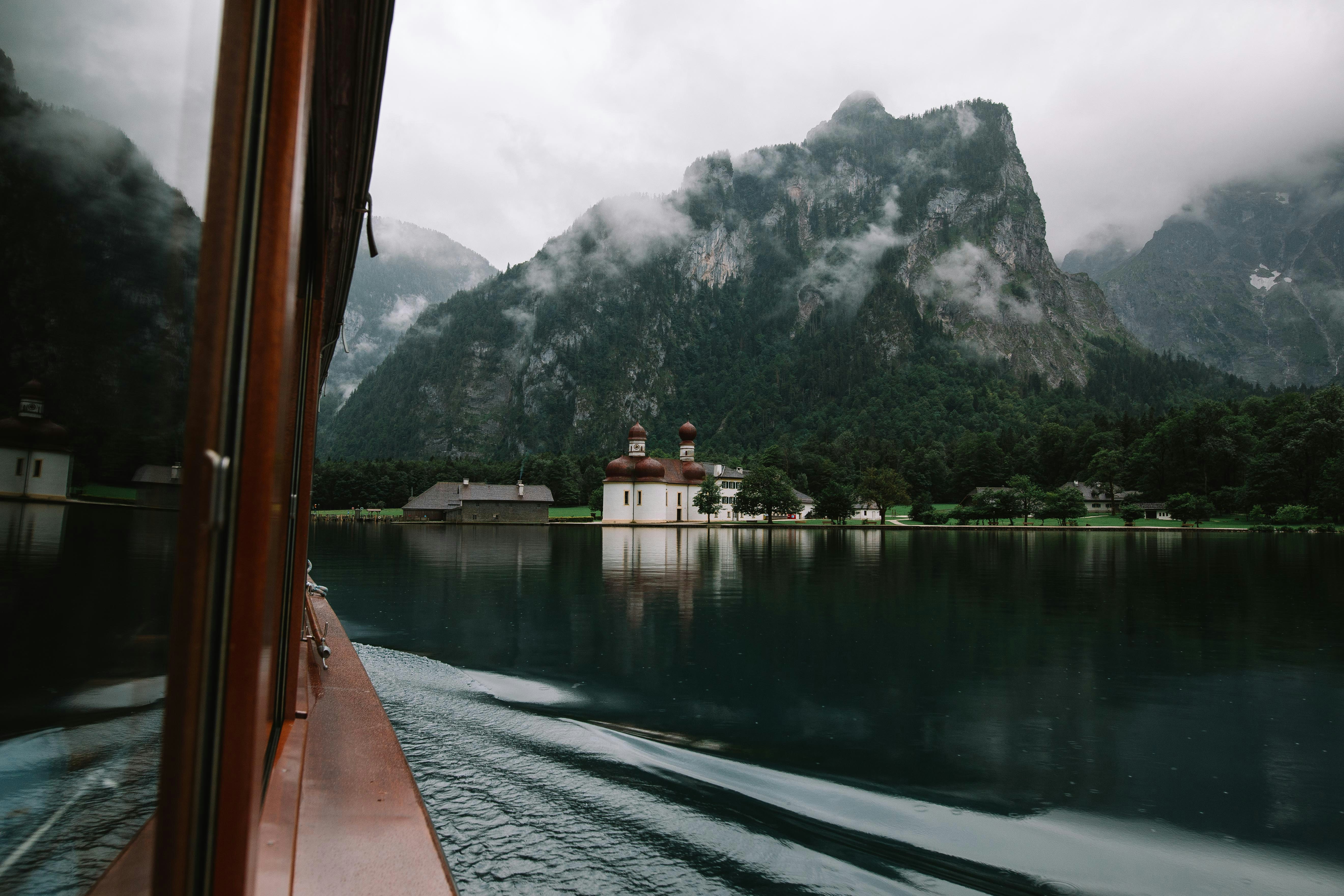 Die St.-Bartholomäus-Kirche ist eine malerische Seekirche in Schönau am Königssee, Deutschland. Die Kirche stammt aus dem 11. Jahrhundert, als sie ursprünglich St. Zeno-Kirche hieß. Die Kirche wurde 1490 während des Deutschen Bauernkrieges zerstört und anschließend 1502 wieder aufgebaut. Heute ist die St. Bartholomäus-Kirche ein beliebtes Ausflugs- und Fotomotiv. Die Kirche überblickt das ruhige blaue Wasser des Königssees und ist von den majestätischen Alpenbergen umgeben. Die einzigartige bayerische Architektur mit ihren steil geneigten Dächern und den kunstvollen Rokoko-Verzierungen sorgt für ein atemberaubendes und zeitloses Foto.