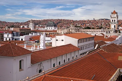 Die Iglesia de la Merced in der wunderschönen Stadt Sucre in Bolivien ist ein Muss für Reisende und Fotografen. Diese atemberaubende Kirche ist eine perfekte Mischung aus barocker und neoklassizistischer Architektur und ihre weiße Fassade und die hohen Glockentürme sorgen für einen atemberaubenden Anblick.