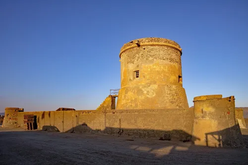 Der Torreón de San Miguel de Cabo de Gata, ein historischer Wachturm im Naturpark Cabo de Gata-Níjar, bietet atemberaubende, panoramische Ausblicke auf die Mittelmeerküste und die zerklüfteten Landschaften, ideal zum Einfangen dramatischer Meereslandschaften und Sonnenuntergänge. Der im 18. Jahrhundert zum Schutz vor Piratenangriffen erbaute Turm fügt Ihren Fotos einen faszinierenden historischen Kontext hinzu. Das Licht am frühen Morgen oder späten Nachmittag verstärkt die Textur des alten Steins vor dem lebhaften Hintergrund des Meeres. Nahegelegene vulkanische Klippen und Strände bieten zusätzliche spektakuläre Fotomöglichkeiten, besonders während der goldenen Stunde. Der Zugang zum Turm kann eingeschränkt sein, daher informieren Sie sich im Voraus und planen entsprechend.
