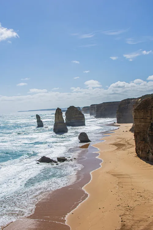 Diese Kalksteinsäulen ragen dramatisch aus den wirbelnden Wellen des Südlichen Ozeans entlang der Great Ocean Road in Victoria, Südwestaustralien, empor und wurden durch Jahrhunderte der Erosion geformt – ein atemberaubendes Küstenspektakel. Das wechselhafte Wetter verändert ihre Nuancen im Laufe des Tages und bietet von jedem Aussichtspunkt eine neue Perspektive. Die besten Plätze findet man auf den Pfaden entlang der Klippen, die mit malerischen Aussichtspunkten gespickt sind. Hubschrauberrundflüge enthüllen die zerklüftete Küste von oben, während ein Besuch bei Sonnenauf- oder -untergang die Szene in lebendigen Farben erstrahlen lässt. Nahe dem Port Campbell National Park ist es zudem eine hervorragende Basis, um nahegelegene Naturwunder wie die Loch Ard Gorge und die London Bridge zu erkunden.