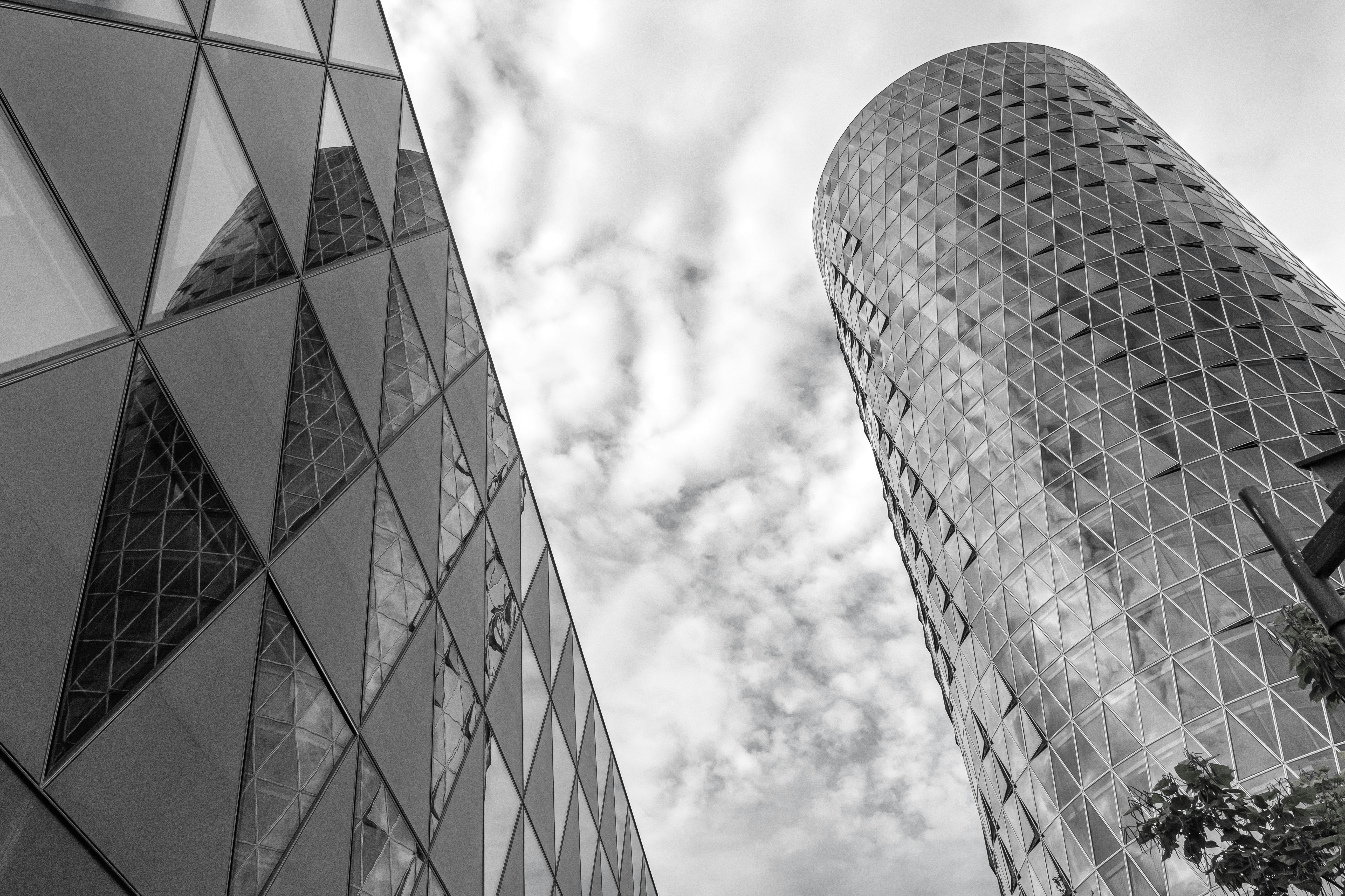 Der Westhafen Tower ist ein siebenstöckiger Bürokomplex im Westhafenviertel von Frankfurt am Main, Deutschland. Es wurde von dem bekannten Architekturbüro Murphy/Jahn entworfen und 2001 fertiggestellt. Der Turm ist zu einem ikonischen Symbol der modernen Frankfurter Skyline geworden und steht hoch über den vielen anderen Hochhäusern, die die Skyline bevölkern. Das Gebäude verfügt über ein geschwungenes Atrium mit zentralem Springbrunnen und zahlreichen Terrassen in den drei Obergeschossen, die einen weiten Blick über Frankfurt und das Umland bieten. Es hat auch eine Einkaufspassage und eine Aussichtsplattform auf dem Dach. Es ist ein idealer Ort für Besucher, um die Pracht der Frankfurter Skyline zu genießen.