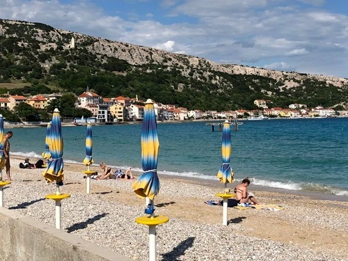 Baška's Beach, located in the popular tourist spot Baška, Croatia, is a stunningly beautiful Mediterranean beach. Situated on the island of Krk, it boasts two kilometers of pebbled coastline backed by a majestic view of the Velebit mountains. With its crystal clear blue waters and sandy shores bathed in sunshine, visitors will want to stay here all day long. The beaches are well-equipped with umbrellas and sun loungers, providing the perfect spot for a summertime siesta. Ample amenities can be found nearby, such as souvenir shops, cafes and restaurants. Swimming, snorkeling and kayaking are popular activities, and boat excursions can be taken from the marina. Inland, there's a picturesque town to explore with its historical churches, streets and landscapes to admire. The views along the coastline are breathtaking, making it a great spot to take in the stunning nature. Whether you are looking for an action-packed vacation or a tranquil escape, Baška has something for everyone.