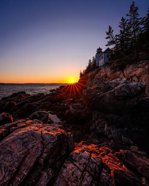 Bass Harbor Head Light Station perches on the rocky shores of Mount Desert Island within Acadia National Park. Built in 1858, this historic beacon symbolizes Maine’s rich maritime heritage. The white, brick lighthouse guides vessels through treacherous waters, while its spectacular setting draws photographers and nature enthusiasts. Visitors can admire the red-topped tower and capture panoramic views from the short trail, though parking is limited. Off-peak hours often provide a quieter experience. Nearby, explore scenic hiking trails, sample fresh seafood, and soak in the iconic New England charm that makes this destination unforgettable. Look out for scenic sunsets that color the sky in brilliant hues.