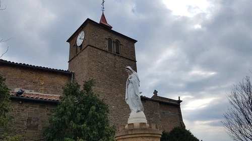 Église d'Oingt is a 12th-century Romanesque church situated in Val d'Oingt in the Beaujolais region of France. It consists of a nave, two aisles, and a small apse, with large semi-circular windows overlooking the village. Inside, the walls are decorated with stained-glass windows depicting scenes from the Bible. It also features an intricately carved pulpit and a massive wooden door carved with images of Jesus and the saints. This church has been classified as a historical monument since 1945, and the views of the surrounding area that it offers make it a very popular spot for visitors.