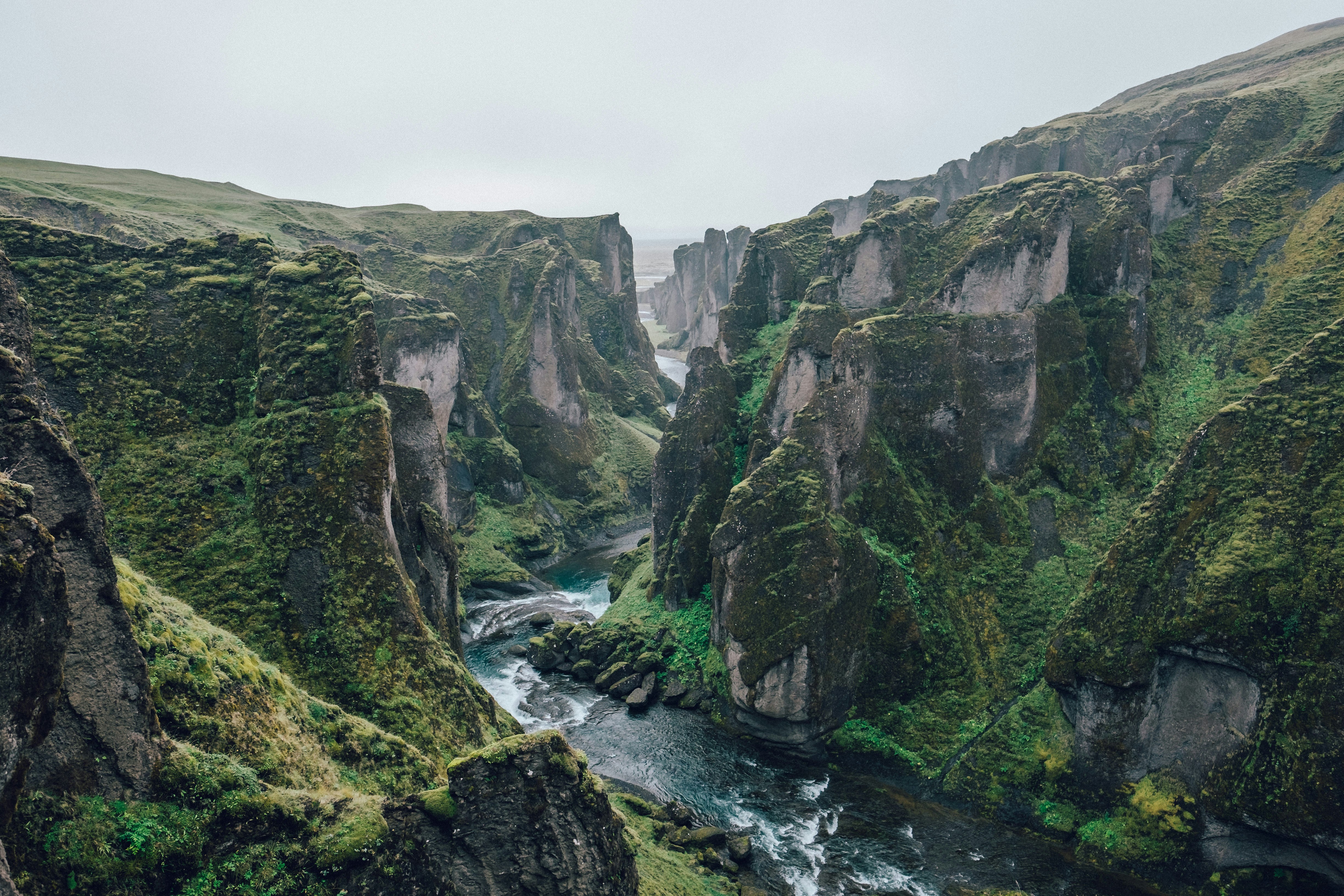 Fjaðrárgljúfur is a beautiful, 100-meter-deep canyon, located near Kirkjubæjarklaustur, Iceland. It is a popular tourist attraction, offering breath-taking views of the river, which flows through its depth. The canyon is located in an area of highland plateau and is accompanied by steep cliffs and rock formations. During summer, small islands, formed by soft sedimentary rocks, can be seen from above. From the viewpoint of the canyon, it is possible to observe a range of wildlife. The area is full of different bird and wildlife species, including the white-tailed eagles and the ptarmigans.