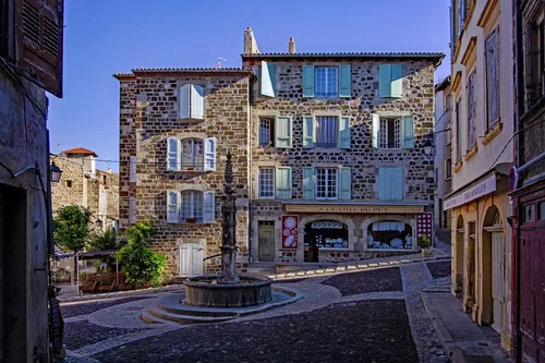 Fontaine et Place des Tables in Le Puy-en-Velay, France, is a historical gem nestled in the heart of the city's picturesque old town. The square, named after its traditional market tables, offers a glimpse into medieval commerce where traders gathered to sell their goods. At its center, the Fontaine (fountain) stands as a charming Renaissance-style monument, often surrounded by locals and tourists enjoying its tranquil ambiance. The area is flanked by quaint cafés and shops, making it a perfect spot to savor regional delicacies or purchase local crafts. Nearby, the stunning Le Puy Cathedral offers a spectacular backdrop, especially during twilight. Ideal for history buffs, the square exudes a timeless atmosphere, inviting visitors to step back in time while embracing the region's vibrant culture.