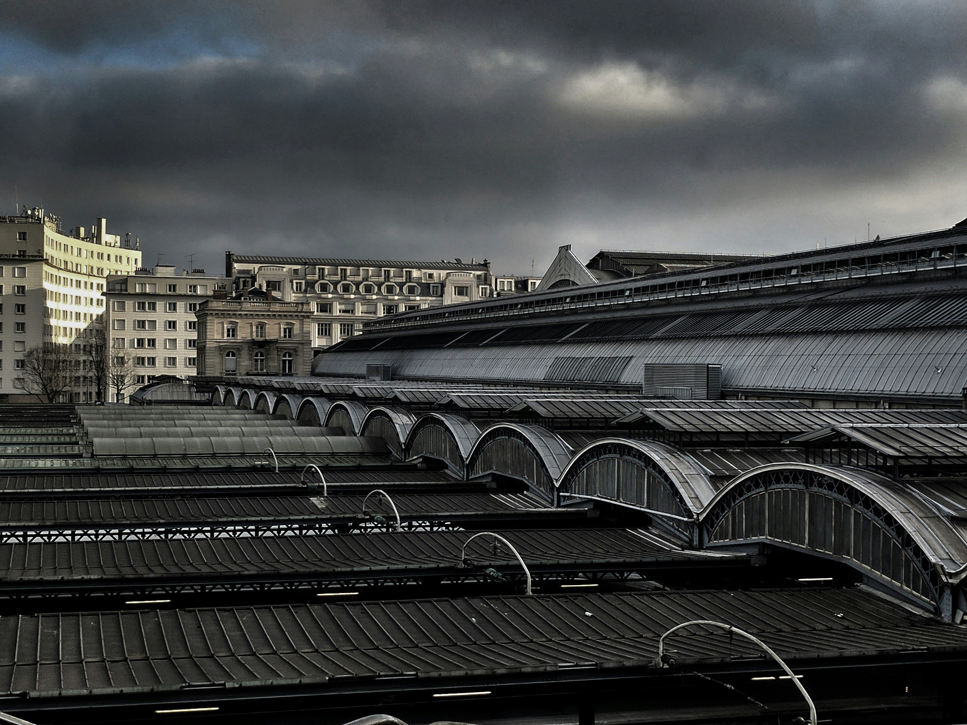 The Gare de l'Est, or Eastern Train Station, is a grand building in Paris, France. Built in 1849, it is one of the oldest train stations in Paris. The station is a hub for international trains and is a starting point for journeys across Europe and France. The station is decorated in a neoclassical style and is situated on the Boulevard de Strasbourg surrounded by many cafes and shops. For travelers it houses a ticket office, first class salons, multiple cafes and train lines including the fast TGV services. For photographers, it is an iconic spot to capture Parisian life with the hustle and bustle of a public station bustling with people throughout the day.