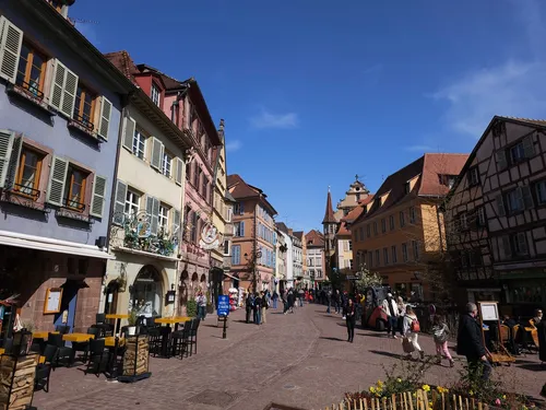 Grand Rue de Colmar is a picturesque street in the heart of Colmar, France, renowned for its quintessential Alsatian charm. Photographers should look out for the half-timbered houses adorned with colorful façades and exquisite flower boxes – these provide perfect compositions at any time of the year. Early morning light gives a golden hue to the cobblestones and architecture, while evening offers a magical ambiance under street lights. Unique shops and cafes along the street provide dynamic foreground elements. Don't miss nearby Maison Pfister for its Renaissance architecture and intricate murals, which can add historical depth to your photo series.