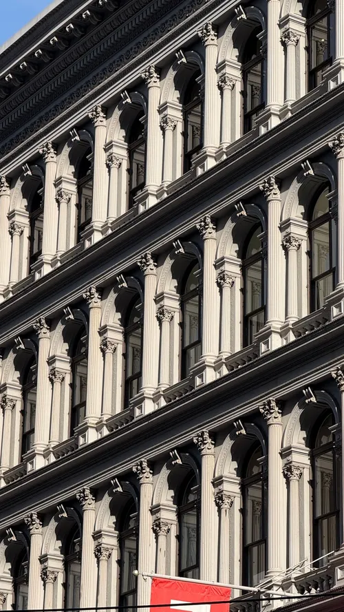 Built in 1857, the Haughwout Building in SoHo stands as one of New York’s finest examples of cast-iron architecture. The building once housed Eder V. Haughwout & Co., a prestigious tableware and glassware store, and it is renowned for hosting the world’s first successful passenger elevator installed by Elisha Otis. Today, its stunning two-story cast-iron façade, designed by John P. Gaynor, remains well-preserved. Strategically located at the corner of Broadway and Broome Street, it’s surrounded by trendy boutiques, galleries, and restaurants. While you can’t typically tour the interiors, the façade alone is worth a visit for history buffs and architecture enthusiasts.
