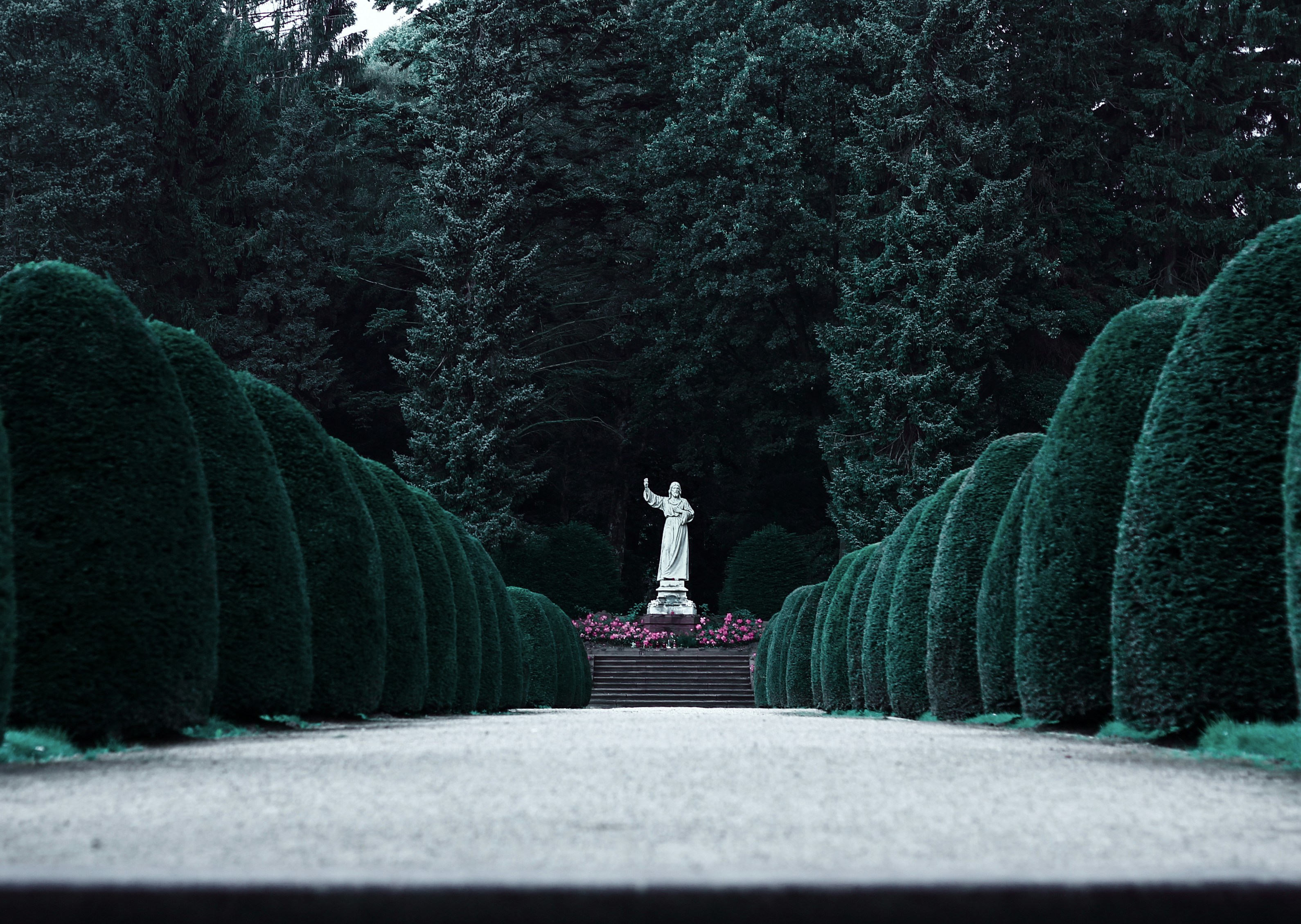 Jesusdenkmal and Ohlsdorf Cemetery in Hamburg, Germany, is one of the largest cemeteries in Europe. The Jesusdenkmal monument commemorates the victims of 1848 unrest and the Hungarian Revolution, which was relocated to Hamburg in the 1960s and is the only monument in Germany dedicated to this event. The Ohlstadt Cemetery, located across the street, is Europe’s largest non-denominational cemetery and is home to a variety of monuments and artwork spread over millions of graves, some going back centuries. It contains memorials to various historical figures, such as the public health officer who tried to control the Hamburg cholera epidemic of 1850, and a war memorial to those killed in World War II. There are even many exotic plant species in the cemetery grounds. Both sites are a peaceful and contemplative space, visited not only by locals in need of reverence, but by tourists and photographers seeking to capture Hamburg's beauty and history.