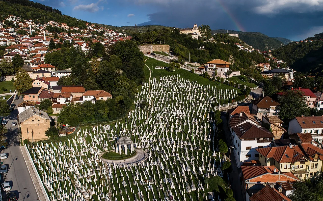 Kovaci Cemetery Sarajevo is an important war memorial located near Sarajevo's National Heroes' Cemetery. It is a solemn place of remembrance for those killed in Sarajevo during the 1992-1995 Siege of Sarajevo. In the cemetery you will find monuments to the victims of the siege and to the fallen UN peacekeepers. It is a somber, yet inspiring place with a very strong atmosphere. Kovaci is also a place where many locals come to pay their respects, and the cemetery is open to visitors who want to learn more about the events of the Siege. There is also a memorial art exhibition, Inside Out Sarajevo, which was created to pay tribute to the people of Sarajevo. This interactive art experience explores the struggles and triumphs that the people of Sarajevo experienced during the siege. Guided tours are also available.