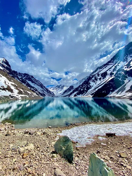 Laguna Del Inca is a stunning alpine lake nestled in the Andes mountains at an elevation of approximately 2,880 meters. Its name, meaning "Inca Lagoon," comes from the local legend of the Inca prince's tragic love story. The lake is renowned for its vivid turquoise hue, which contrasts strikingly with the rugged, snow-draped peaks surrounding it. For photo-travelers, it's best to capture the lake in the early morning or late afternoon when the light enhances its colors and reflective qualities. The area is accessible via the Carretera Internacional, which frequently appears in foreground shots. Be mindful of variable weather; the site is picturesque year-round but uniquely beautiful as the snow melts in late spring.