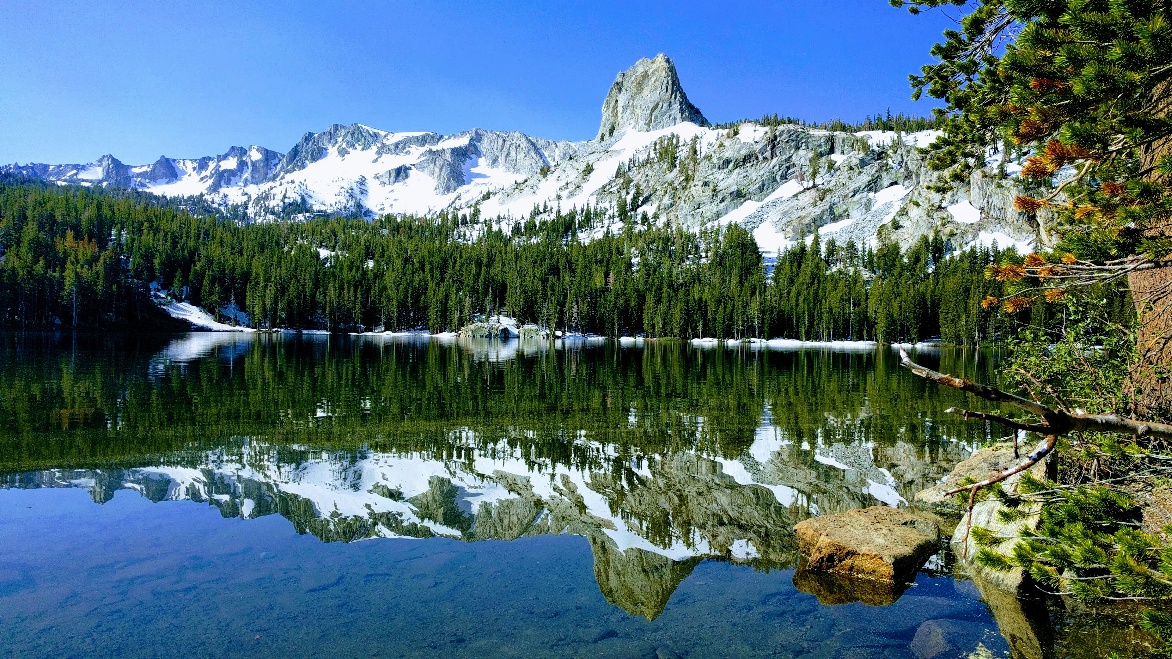 Lake George is located in the eastern Sierra Nevada, at an altitude of 10,000 feet in Mammoth Lakes, California. It is one of the most picturesque and serene lake in the Mammoth Lakes area. This lake is surrounded by a lush array of pines and conifers, along with granite cliffs and formations rising high above the lake. It is a great spot for fishing and enjoying nature’s peaceful beauty. There are several popular hiking trails around the lake, providing beautiful scenic views. Fishing is a popular activity at this lake. It is stocked annually with rainbow, brown, and golden trout. Boating is also permitted but only electric trolling motors are allowed. It is also very common to sight bald eagles, hawks and other bird species around this lake. Enjoy the great natural beauty around this lake!
