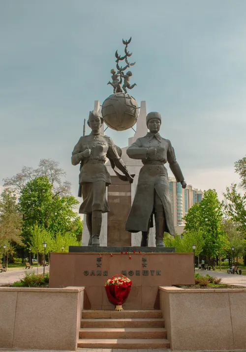 Dedicated to Kazakhstan’s proud war heroes, the Memorial of Aliya Moldagulova and Manshuk Mametova commemorates two remarkable young women who fought valiantly in World War II. Aliya, a skilled sniper, and Manshuk, an adept machine gunner, made ultimate sacrifices to protect their homeland. This bronze sculpture, set amid the scenic Panfilov Park, depicts them side by side, epitomizing unity and courage. The grassy area around the monument offers benches, walkways, and tranquil spots for contemplation. Visiting this site provides valuable insight into Kazakhstan’s wartime history, while its central location makes it easy to combine with other cultural highlights in Almaty.