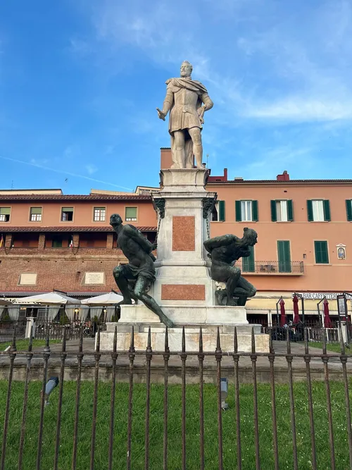 Rising near the Porto Mediceo, the Monumento dei Quattro Mori is a striking symbol of Livorno. Commissioned in the early 17th century by Grand Duke Ferdinando I de’ Medici, it features a bronze statue of the Duke flanked by four chained Moorish pirates—an emblem of Tuscany’s naval victories against Ottoman corsairs. The statue is known for its expressive realism, especially the lifelike details of the captives’ faces. Located near key landmarks like the Fortezza Vecchia and the port’s waterfront, it’s an iconic stop for history buffs, photographers, and those seeking to explore Livorno’s maritime heritage. Its harbor-side setting also makes it a picturesque start for strolling the city’s historic canals, known as the “Fossi.”