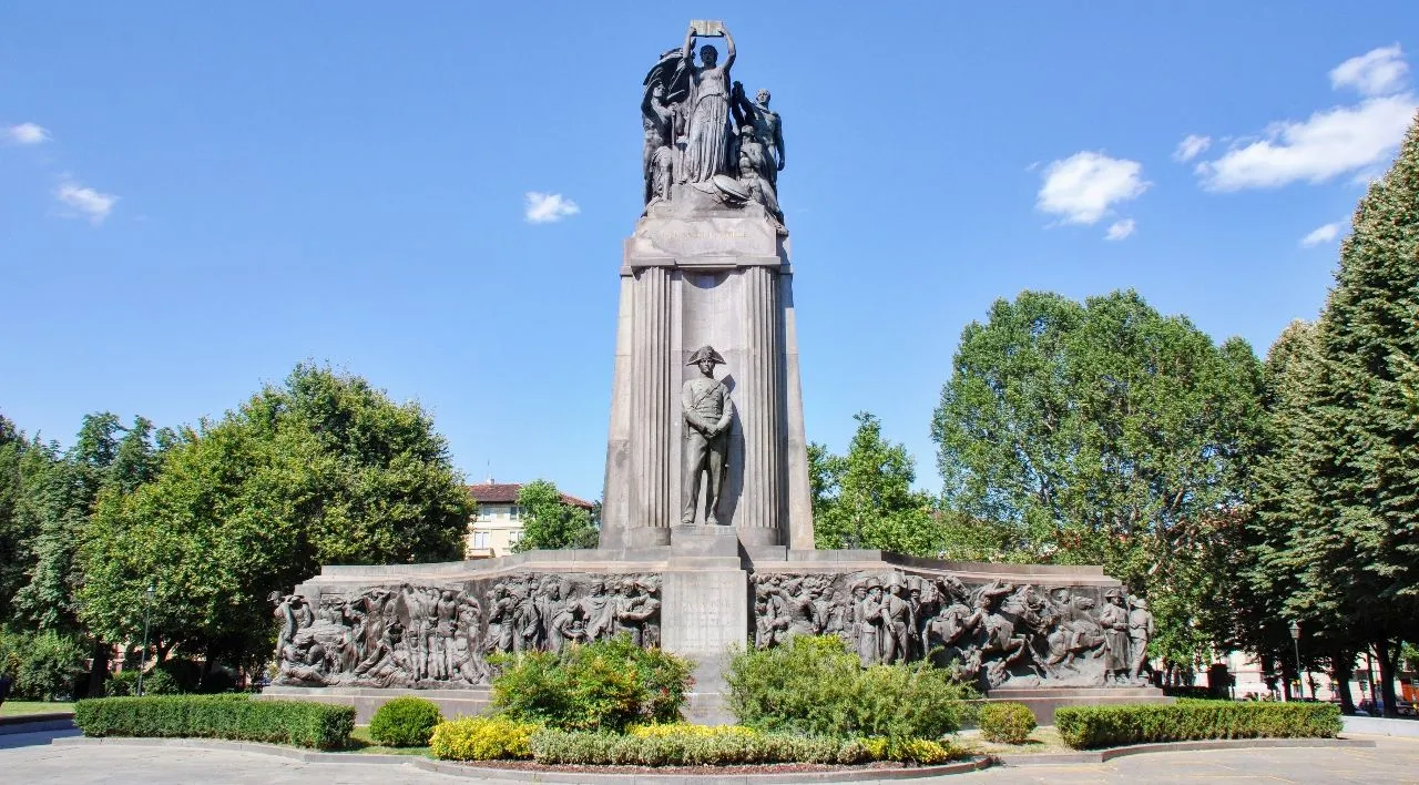 Monumento al Carabiniere and Giardini Reali in Torino, Italy is a picturesque and historically significant site. Located adjacent to the Piazzetta Reale, Monumento al Carabiniere is a majestic bronze sculpture honoring Turin's carabinieri, Italy's paramilitary police. Behind it lies Torino's Royal Gardens, a stunning spread of tropical and Mediterranean vegetation featuring palms, magnolias, holm oaks and many other exotic species. Enjoy a leisurely walk along the park's tree-lined paths and catch glimpses of the majestic snow-capped Alps in the distance. Within the gardens you’ll also find statues and monuments, a majestic staircase and even a tiny river beach. This is the perfect place to relax and escape the city bustle.