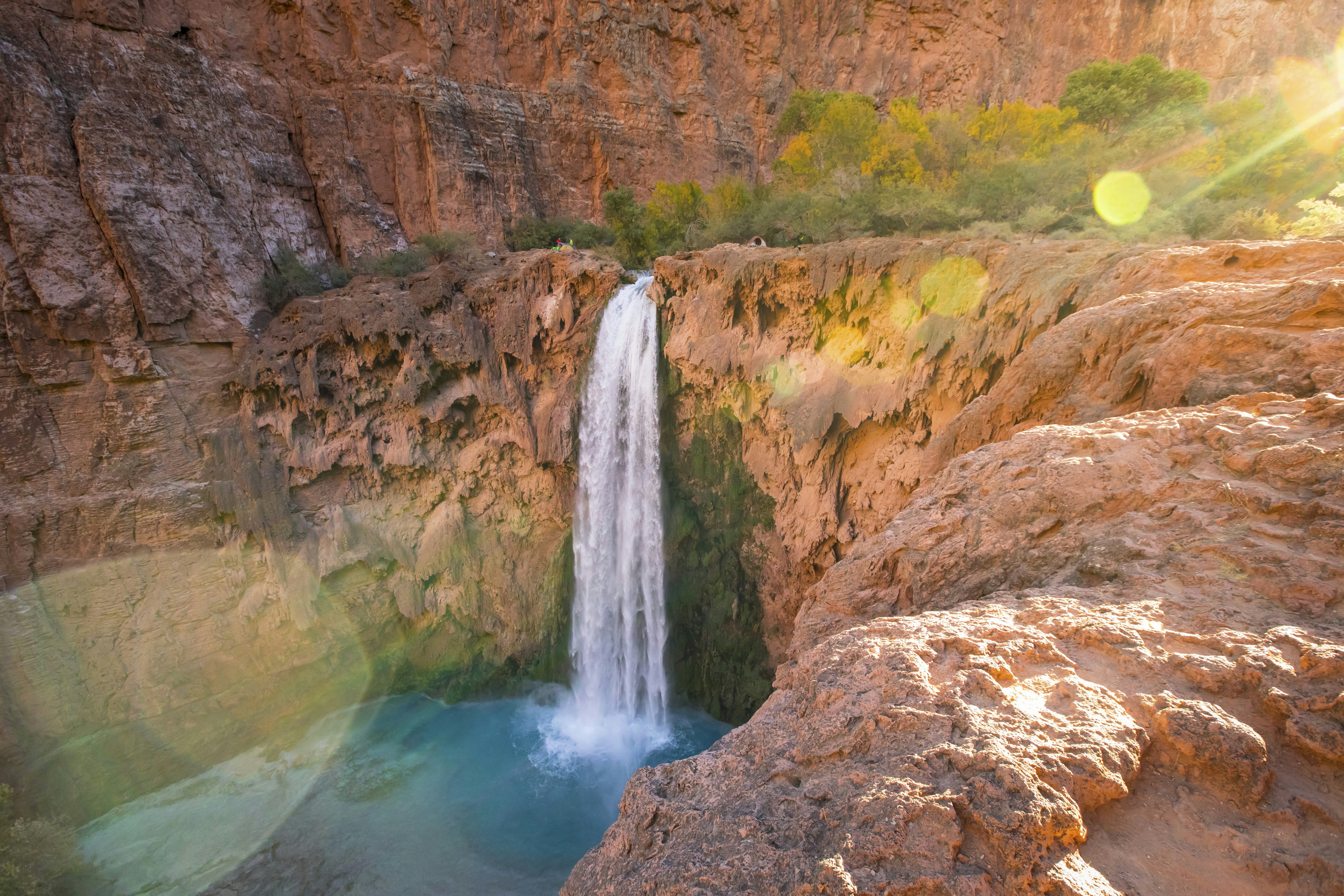 Mooney Falls is a breathtakingly beautiful waterfall located in the Havasupai Indian Reservation in Arizona, USA. It is one of the most stunning features of the Grand Canyon, created over thousands of years of erosion. Mooney Falls is nearly 200 feet high and can be reached via a steep but well-built trail which begins at the campground of the same name. The trail is equipped with handrails, aluminium ladders and chains, but even then it is considered difficult and should not be attempted by anyone who is physically weak or ailing. Spectacular views of Mooney Falls can be enjoyed from the top of the trail as well as the bottom, while a misty spray of the falls can be experienced from the middle of the falls. It is a popular spot for photography and a sight to behold.