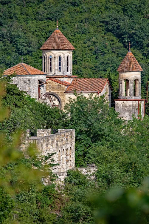 Motsameta Monastery, perched on a cliff overlooking the Tskaltsitela River, offers a stunningly picturesque setting ideal for photography. The monastery is surrounded by lush forests and often enveloped in mist, creating a mystical atmosphere. Golden-hour shots are particularly striking here, as the sunlight filters through the trees and illuminates the ancient stone structures. Inside the monastery, the relics of Saints David and Constantine can be found, adding a touch of historical depth to your photographs. The path leading to the monastery features photogenic views of the river gorge and the surrounding landscape, making it a must-visit for capturing both natural and architectural beauty.