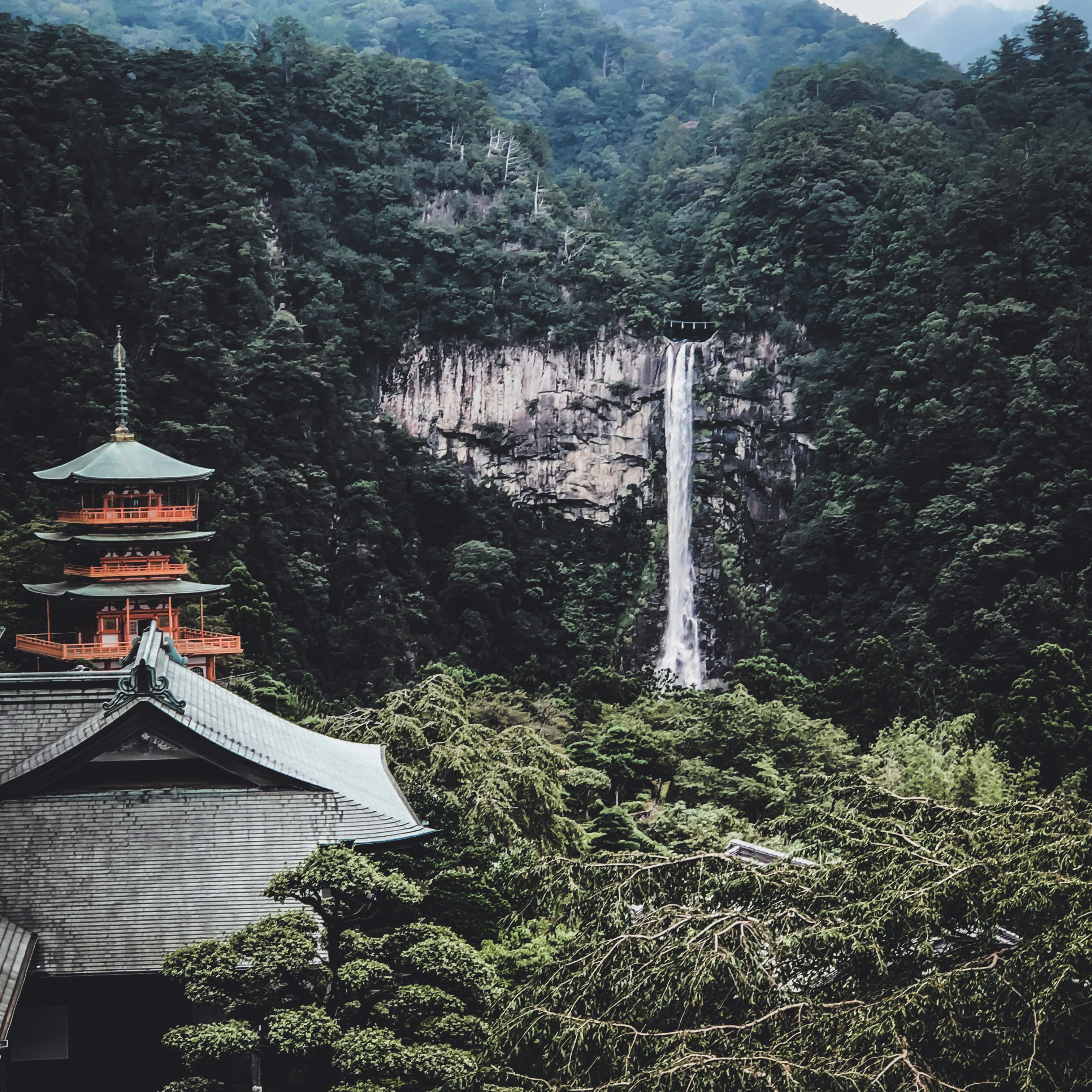 Nachi Falls and Seiganto-ji are two of the most popular sightseeing spots in Wakayama Prefecture, located in the Nachikatsuura area of Japan. Nachi Falls is the tallest waterfall in Japan at 133 meters in height and 13 meters in width. The waterfall plunges down into a valley surrounded by the lush forests of the Kii Mountains. Seiganto-ji is an impressive Shinto temple located atop a steep cliff overlooking Nachi Falls. Visitors can enjoy sweeping views of the waterfall from the terrace inside the temple's main hall. On a clear day, guests can also see the sacred Oyamazaki-yama mountain. The temple dates back to the 8th century and is a designated historical site by the Japanese government.