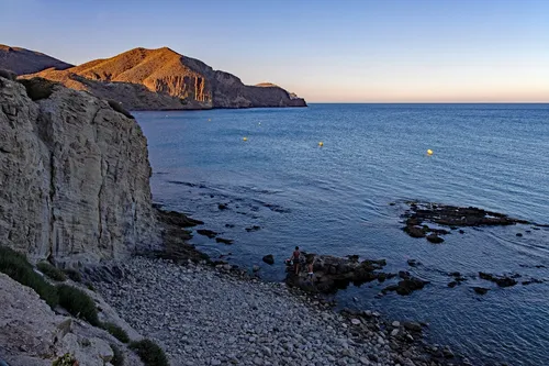 Framed by the dramatic volcanic cliffs of Cabo de Gata-Níjar Natural Park, Playa del Peñón Blanco offers crystal-clear waters perfect for snorkeling and swimming. A short walk from the tranquil fishing village of La Isleta del Moro, this unspoiled beach boasts fine golden sand and a serene atmosphere away from crowded tourist hubs. Accessible by car or on foot from the village, it’s advisable to pack essentials like water, snacks, and sun protection, as facilities here are minimal. Marvel at the striking contrast between the turquoise sea and the stark, white-pebbled shoreline, exploring nearby rock pools alive with marine life. For panoramic views, climb the surrounding cliffs and capture unforgettable sunsets.