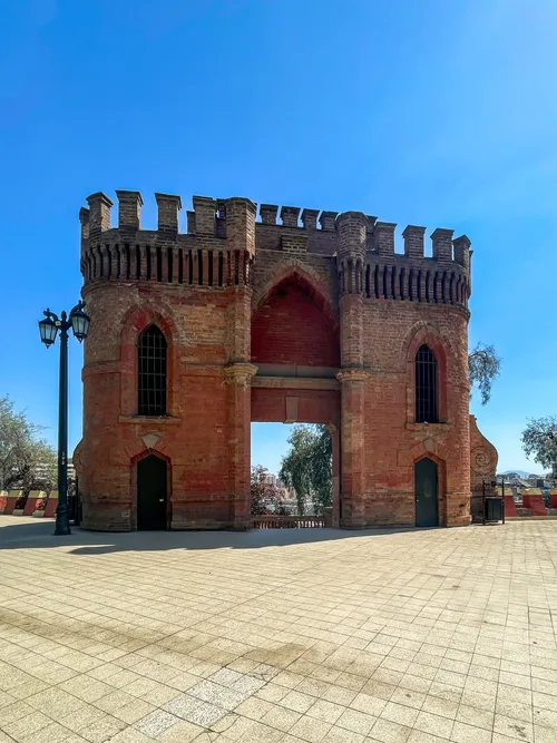 Puerta Española, situated on Santa Lucía Hill in Santiago, serves as a historical gateway offering a blend of Neo-Gothic and Neo-Renaissance architectural styles. This picturesque cultural landmark is an ideal spot for capturing panoramic views of Santiago's urban landscape framed by the Andes mountain range. The afternoon offers the best lighting for photographs. Nearby, explore stone terraces, fortifications, and the Castillo Hidalgo, which provide rich historical context and further photographic opportunities. The area is accentuated by lush gardens and fountains that contrast beautifully with the cityscape, ideal for varied captures.