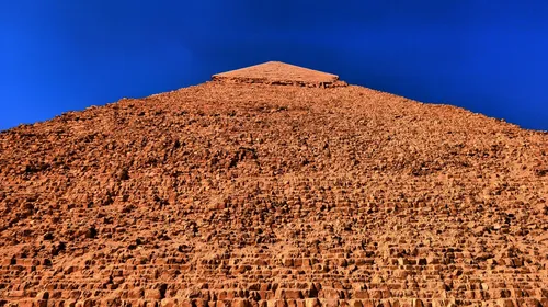 Second largest among Giza's pyramids, the Pyramid of Khafre features remnants of its original limestone casing near the apex. Built around 2570 BCE for Pharaoh Khafre, son of Khufu, it appears taller than the Great Pyramid due to higher bedrock. Inside, narrow corridors lead to a simple burial chamber once housing the king’s sarcophagus. Part of a larger complex, it lies near the iconic Great Sphinx, believed to bear Khafre’s likeness. Crowds and heat are best avoided by visiting in the early morning. Bring lightweight clothing, sun protection, and plenty of water for an unforgettable experience.