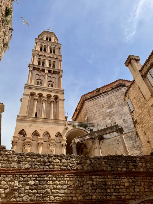 Saint Domnius Bell Tower, a prominent feature within the Diocletian's Palace complex in Split, Croatia, offers stunning panoramic views of the city and the Adriatic Sea. Its Romanesque style, combined with Gothic and Renaissance elements, provides a picturesque subject for photography. Climbing the narrow, historic staircase rewards visitors with a breathtaking perspective, especially at sunrise or sunset when the warm Mediterranean light bathes the surroundings. The tower's height and open roof top offer unobstructed views, ideal for capturing the layout of Split’s Old Town, the harbor, and the neighboring islands. The intricate architectural details on both the interior and exterior offer opportunities for detailed close-up shots.